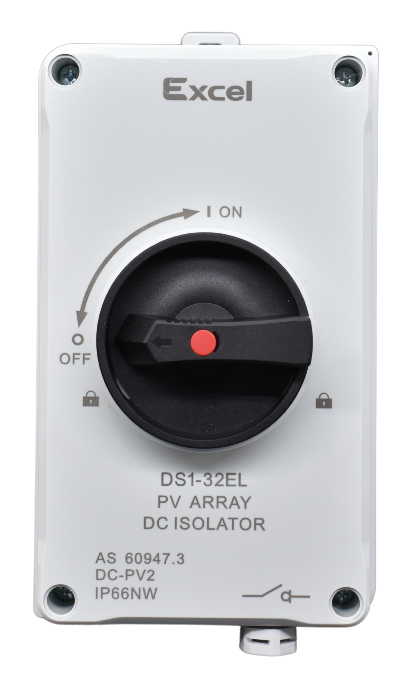 Excel range of IP65 DC rotary isolators for voltages of upto 1200V and upto 32A